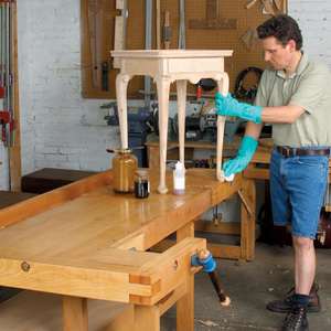 Synopsis: This steel wool and vinegar method for ebonizing wood is appropriate whether you want a dark, graphic look or tones of gray, blue, and purple. The difference is the amount of tannin in the wood and the strength of the solution. Michael Robbins demonstrates how to make and use the solution to bring out the dark tones in wood, and then provides methods for getting your darks darker or your blues and grays beautiful and cool.