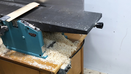 For a while now I’ve been using a sliding bandsaw jig to slice boards from small logs—up to 12 in. dia. and 6 ft. long. The key to the function of the jig—which is just a piece of 3/4-in. plywood with a long miter-slot runner attached—is using large door hinges to attach the log to the platform. The hinges are attached to blocks, which you can screw down quickly anywhere along the length of the jig. Attaching the hinges to the log is just as fast, making it easy to change the log’s position for different cuts. The setup also requires some sort of outfeed support, with a gap to accommodate the runner. I screw two pieces of irrigation hose to the tops of my work stands to accomplish this. For larger logs I reposition the log for each new cut. For smaller ones, I flatten two faces at right angles, put the jig aside, and run those faces against the fence and table from there.