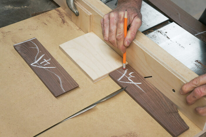 Work SmartSmaller pieces can be a challenge to cut safely, so I use the eraser end of a pencil to keep the parts nested tightly against the stop block and my fingers a safe distance from the blade. |