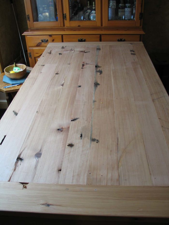 Getting them out means a serious butchering job. In fact, it's often best to leave them in. The tabletop pic is of the underside of a kitchen table made from reclaimed pitch pine full of nails. I've made a few of these, with some preferring the nails to be hidden underneath (as in the table top pictured) but others liking the nails on view, showing the "honest" source of their table's timber.