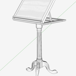 As you can see, the sketches were mainly in perspective 3D mode – unfortunately, there were no scaled or straight-on front, top, side orthographics. Nevertheless, it looked like important dimensions were shown. This was going to be a challenge, especially the upper part with double angle-adjustable music racks. My normal procedure for starting a SketchUp would not be possible. That is, there would be no imported photos or orthographic shapes to trace-over. I would have to interpret these pencil graphics and build the components line-by-line.
