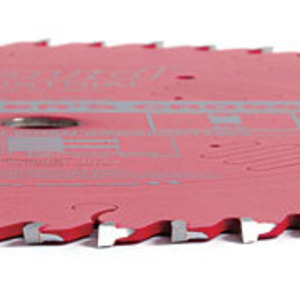 The rip blade, also an ATB, with 30 teeth and graduated gullets, excelled on various thicknesses without needing much force. The blade left very few sawmarks overall, and the softer woods were smooth. This blade was thinner than others, at 3⁄16 in. None of the blades made a high-pitched sound or vibrated.