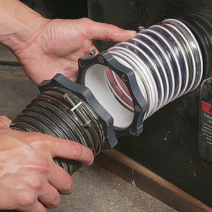 The corrugations on most vacuum hoses, including the one on my Festool Dust Extractor, tend to catch on the sharp edge of the workbench and restrict sander movement. To solve the problem I purchased “Expandable Braided Sleeving” from Amazon in the 1 1/4-in.-dia. size, which fits over the end fittings on the hose and pulls tight on the hose itself. I secured it at each end with a zip tie and Gorilla tape. For $15 total, I now have a hose that glides over table edges and makes sanding easier. For larger hoses, look for larger-diameter sleeving.