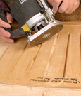 Slots add some give to the stiff material. These can be cut a number of ways, but Fortune prefers to use a template-guided router for consistent results.